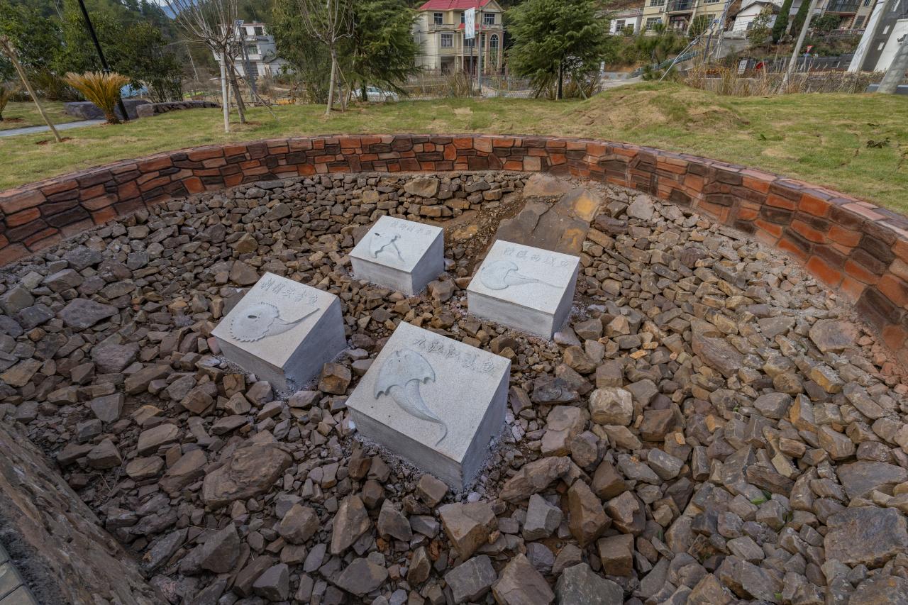 图为江西省武宁县澧溪镇化石广场上的化石模型。受访者供图