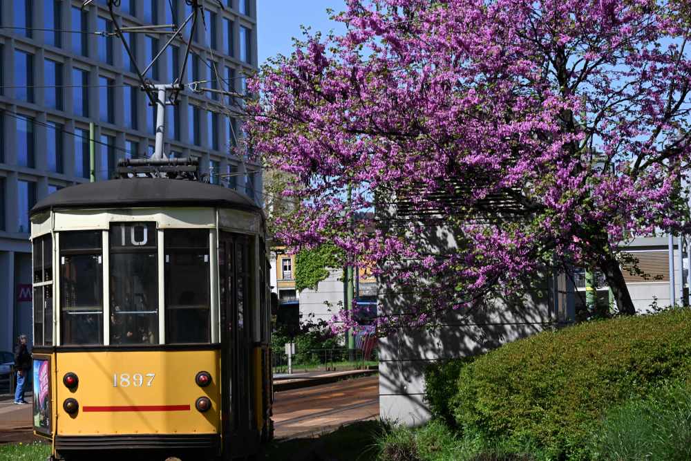 这是4月11日在意大利米兰加里波第火车站附近拍摄的春花。新华社发(阿尔贝托·林格利亚摄)