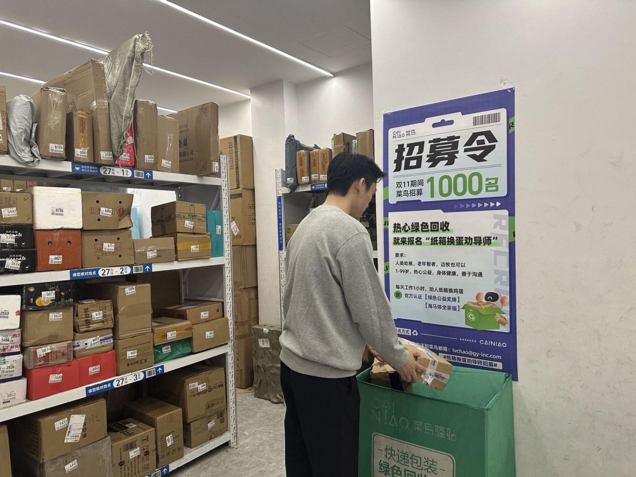 11月1日起,菜鸟在全国启动“纸箱换蛋劝导师”招募,计划招募千名志愿者,负责在菜鸟驿站协助消费者参与“快递包装回收换蛋”,引导消费者参与绿色物流。