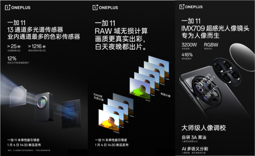 1月3日,一加宣布旗舰新品一加11哈苏手机影像系统全面升级,以更丰富真实的色彩用户获得故事感更佳的影像体验:配备全新的13通道多光谱传感器,并在独家自研RAW 域无损计算引擎加持下,影像色彩更真实、更准确。此外,一加11主摄、人像镜头、超广角镜头均采用索尼旗舰级镜头。一加中国区总裁李杰Louis表示,一加 11 的影像始终围绕如何让用户更好地拍好“故事”来打造影像能力,在硬件和软件上都带来了很多扎实、好用、创新的体验。