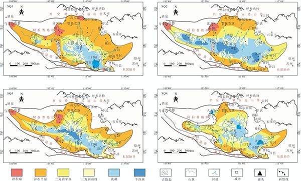 二、中—晚三叠世鄂尔多斯原型盆地经历了从起始阶段到最大沉降阶段再到后期关闭阶段的湖泊演化过程。古地理模式主体表现为北部/东北部的曲流河–三角洲沉积体系和南部/西南部冲积扇-辫状河-三角洲沉积体系的汇聚,沉积中心从起始阶段沉积期到最大沉降阶段沉积期不断向西北迁移,并在随后的后期关闭阶段沉积期分异为多个沉积中心。