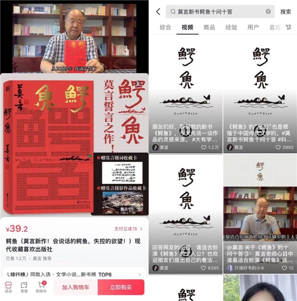 不仅如此,“全民好书计划”也在助推更多新书破圈突围,成为全民参与的文化热点。近期,莫言获诺奖之后的首部长篇新作《鳄鱼》刚刚发布,就同步入驻了抖音商城。#莫言新书鳄鱼十问十答 也成为了抖音热门话题,莫言用十条短视频讲解《鳄鱼》背后的创作故事,极大地调动了读者的好奇心,满足了读者深度探索的求知欲,也让这本书的讨论度连日高居不下。
