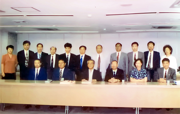 97年8月中国湖北省高等教育代表团访问日本东京大学(前排左三东京大学副校长青柳正规教授,左四雷式祖教授)