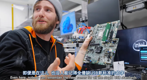 科技博主Linus Sebastian受邀前往英特尔晶圆厂内部参观时发现,就算是晶圆厂内部,似乎也没人能记得住USB标准的名字。图片来源:LinusTechTips