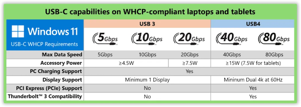 微软WHCP对USB-C接口的要求。图片来源:Microsoft USB Blog