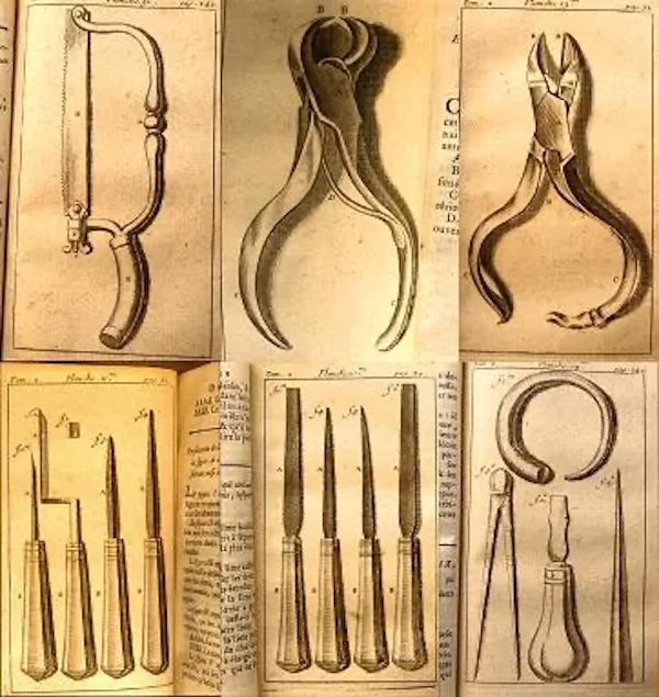 除此之外,福沙尔也借鉴钟表匠、珠宝匠甚至是理发师的工具,在牙科器械方面做出了很多即兴的创新。甚至我们如今在牙科诊所用的许多工具,也能见到福沙尔发明的影子。