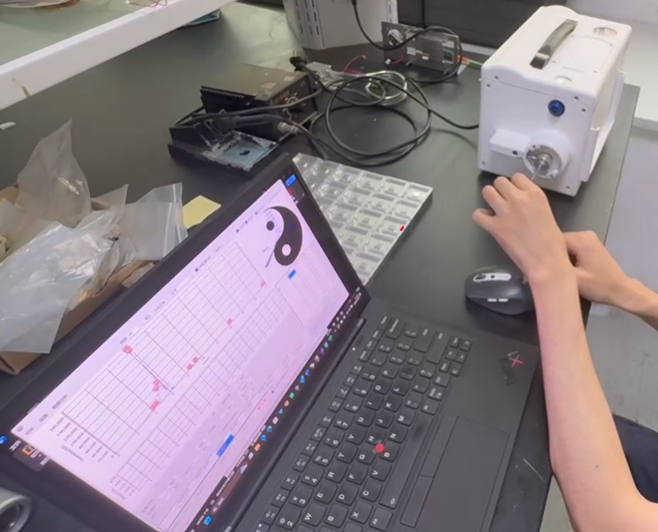 研究团队正在测试样品,GC-SAW设备体积仅为一台电脑主机大小(图片来源:朱丹华)