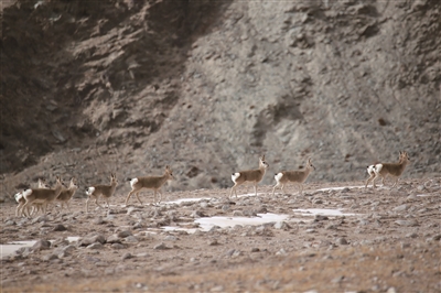 哈尔腾草原位于青藏高原北缘,平均海拔超过3800米,是众多高原野生动物繁衍生息的乐园。近年来,随着当地生态保护力度的持续加大,野牦牛、藏原羚等珍稀物种种群数量正稳步增长。 图为国家二级保护野生动物藏原羚在甘肃省阿克塞县阿勒腾乡哈尔腾草原活动觅食。