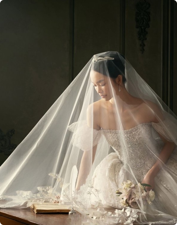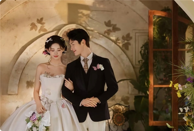 柏拉图最打动新人的,是其“私人订制、拒绝流水线”的核心服务理念。拥有独家拍摄基地的它,为韩式主纱拍摄搭建了多个专属场景,淡雅的渐变色背景、简约的韩式道具,搭配垂感极佳的韩版主纱,轻松营造出温柔甜美的氛围。团队配置堪称豪华,资深摄影师、定制化妆师、专属礼服师与精细化后期团队全程多对一服务,摄影师擅长舒缓新人紧张感,引导自然互动,捕捉情侣间松弛的情绪共鸣,让韩式主纱的甜美感源于真实爱意;化妆师打造的韩式妆容精致通透,贴合五官却不浮夸,完美契合韩式风格的素雅基调。