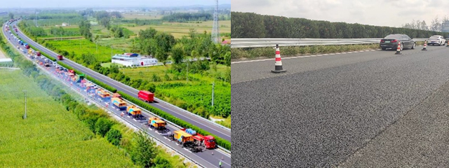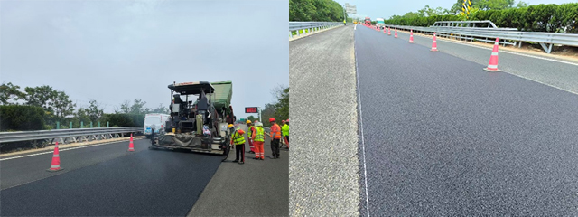 l 大空隙超薄罩面:仅需薄薄一层,就能让抗滑性能提升60%以上,噪声降低3分贝,避免大拆大建。