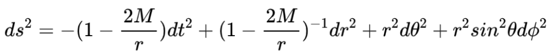 其中,是里奇曲率张量,R是里奇标量,是度规张量,为应力-能量-动量张量,通过假设真空条件,史瓦西可以将取零。