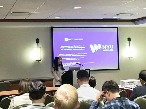 为了将相关系统推向应用,孙舒在2015—2016年多次参加国际5G信道模型预标准会议,其中两次作为纽约大学唯一代表与会。在会议中,她与领域成员针对相关问题展开了激烈探讨,最终CI模型的创新优势得到了相关领域科研人员的广泛认可,并使其成功列入3GPP标准中,为国际学术界、工业界研究和利用毫米波路损提供了准确、公认的理论依据。在相关科研成果的基础上,孙舒在国际知名会议和期刊发表多篇CI模型相关高水平论文并被引用2000余次,其中一篇期刊论文还获得了2017年尼尔谢菲尔德最佳传播论文奖。